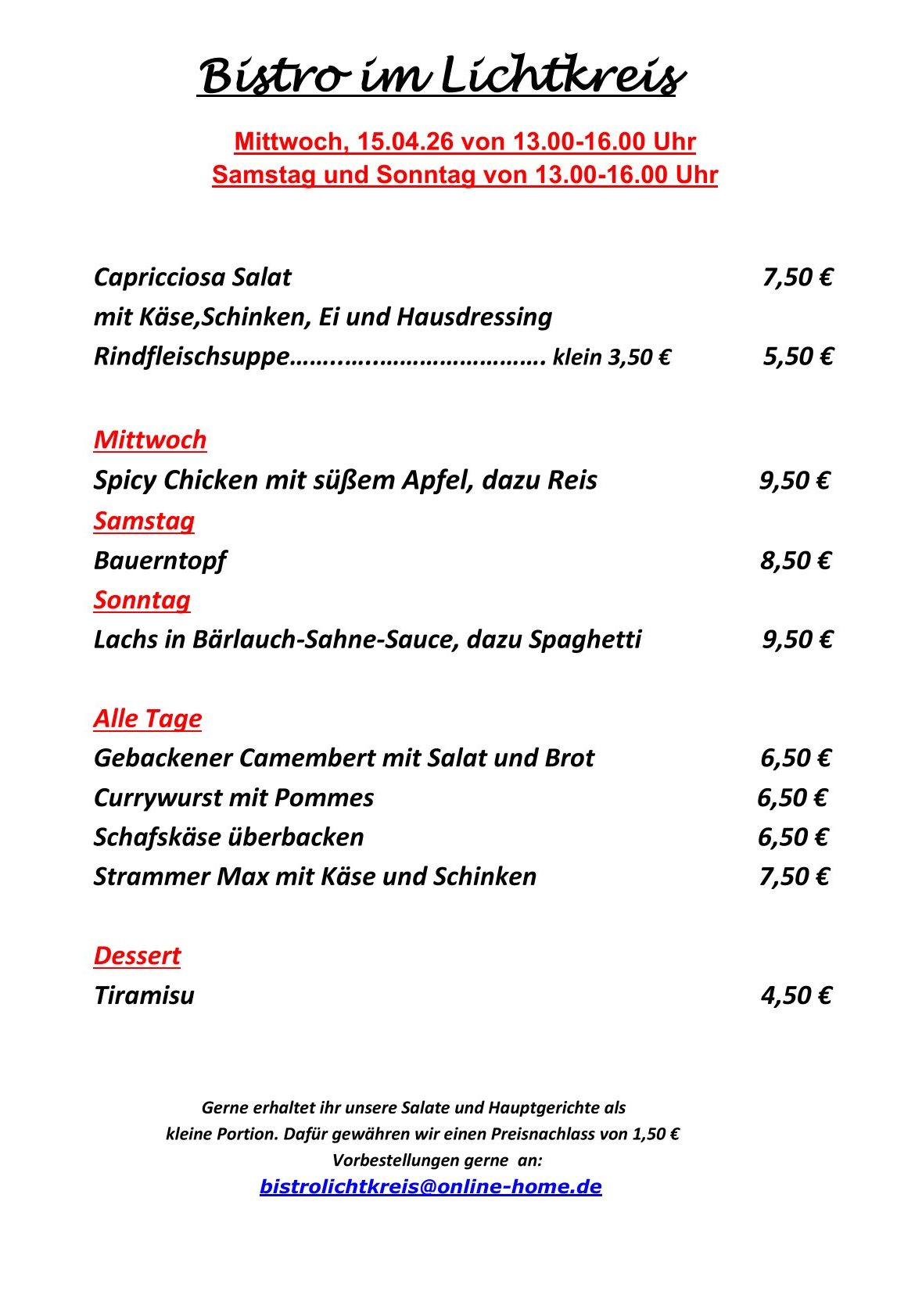 Samstag und Sonntag 13:00 bis 16:00 Uhr.